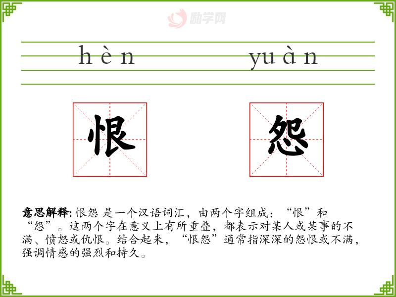 通过对“恨怨”的深入学,我更加理解了这一情感词汇的复杂性和它在人际关系中的重要性。在语言学和表达中,准确使用“恨怨”可以帮助更深刻地传达情感和意图。