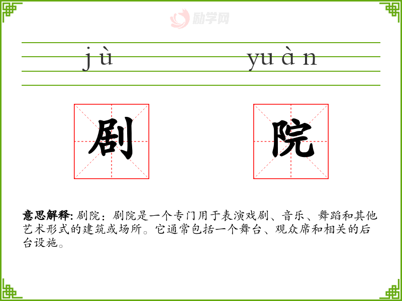 - 理解:剧院不仅是表演艺术的物理空间,更是文化交流和情感表达的重要场所。