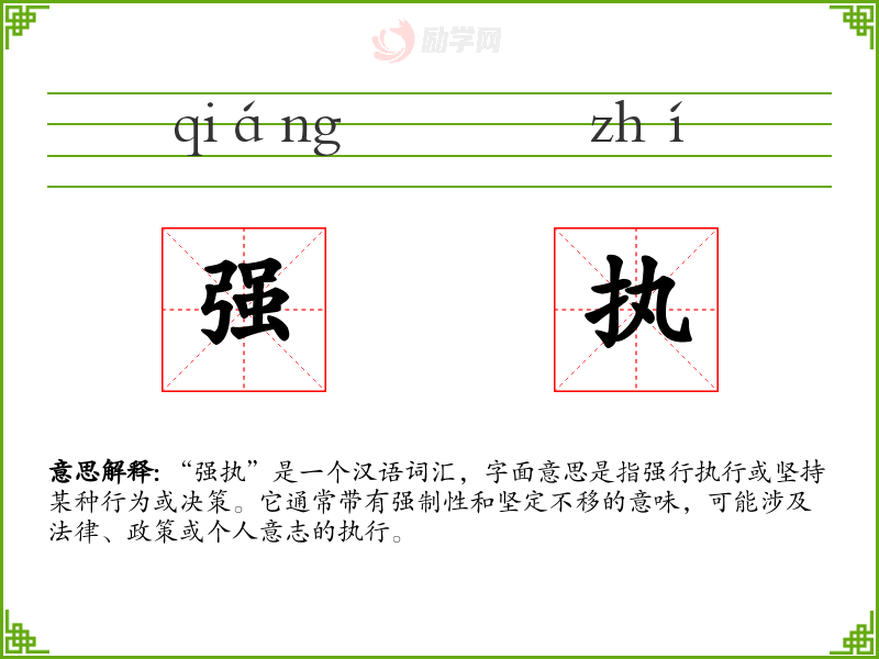 - 专业领域:在法律或政策领域,“强执”可能指强制执行法律或政策,如“政府将强执新的环保法规。”
