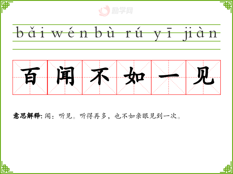 闻:听见。听得再多,也不如亲眼见到一次。