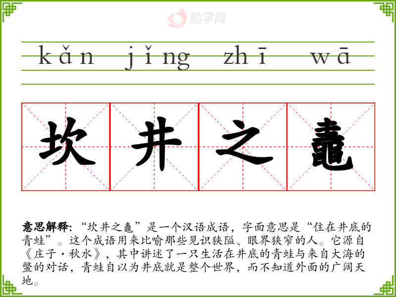 1.坎井之鼃的拼音是什么?坎井之鼃怎么读?