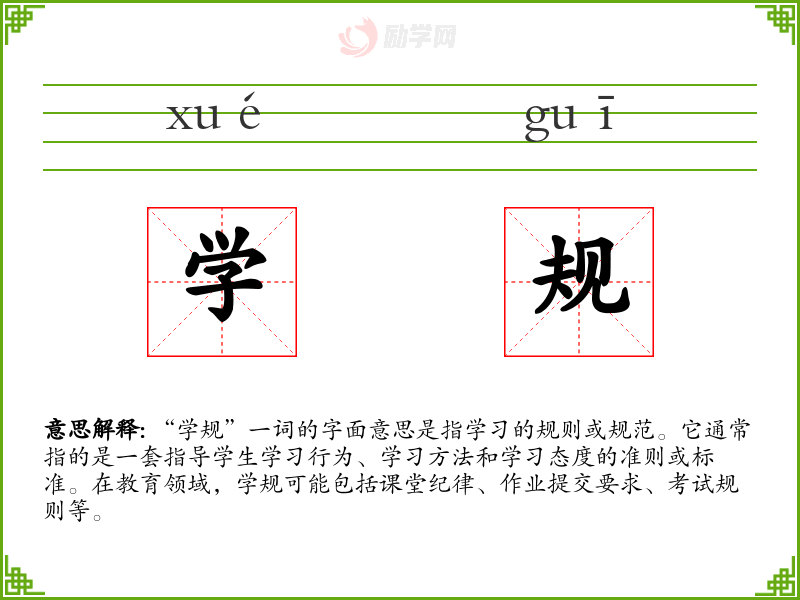 “学规”一词的字面意思是指学的规则或规范。它通常指的是一套指导学生学行为、学方法和学态度的准则或标准。在教育领域,学规可能包括课堂纪律、作业提交要求、考试规则等。