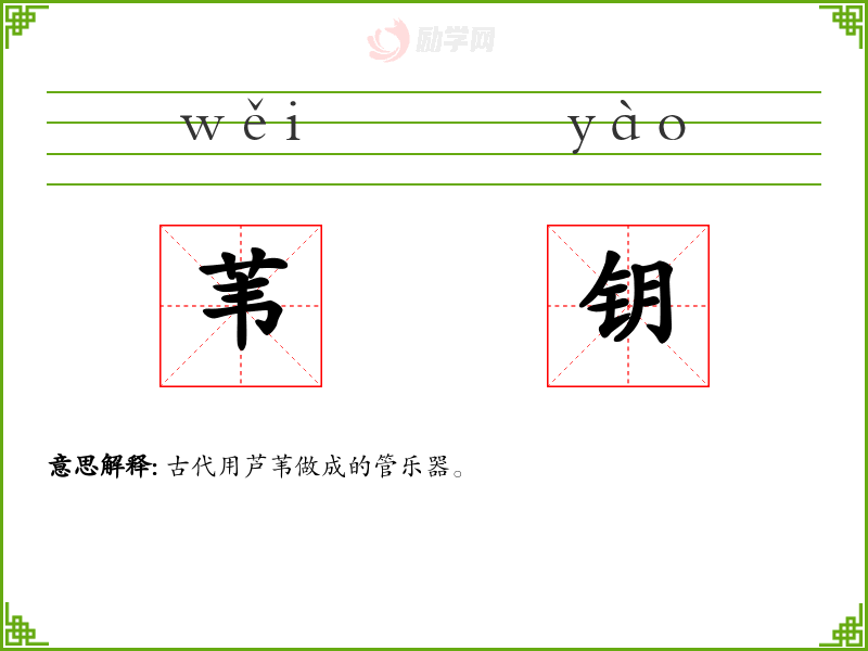 苇钥的意思是:古代用芦苇做成的管乐器。