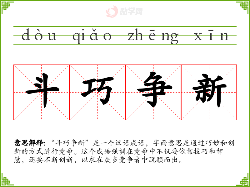 1.斗巧争新的拼音是什么?斗巧争新怎么读?