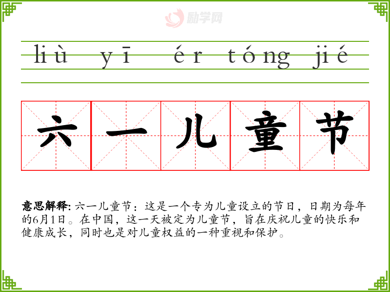 1.六一儿童节的拼音是什么?六一儿童节怎么读?