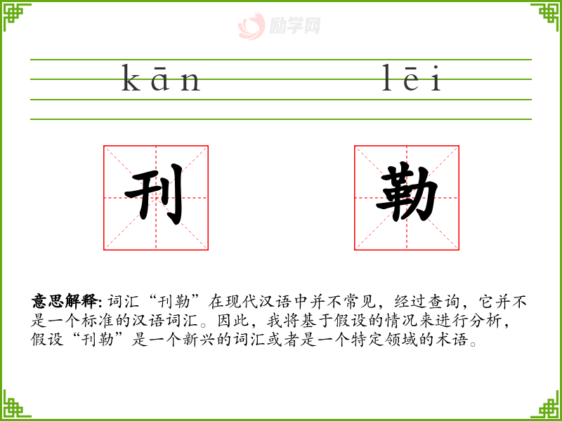 词汇“刊勒”在现代汉语中并不常见,经过查询,它并不是一个标准的汉语词汇。因此,我将基于假设的情况来进行分析,假设“刊勒”是一个新兴的词汇或者是一个特定领域的术语。