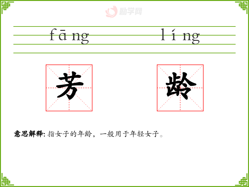 芳龄的意思是:指女子的年龄,一般用于年轻女子。