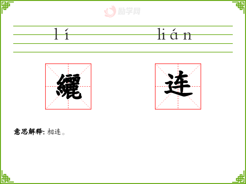 连[ lián ] 1. (会意。从辵(chuò),从车。本义:人拉的车)。 2. 同本义。 【引证】 《说文》。段注:“连即古文輦也。-連,负车也。 《周礼·故书巾车》-连车组輓。 《周礼·乡师》-与其輂连。 《管者·海王》-行服连轺辇者。 《庄子·让王》。郑君、房君、司马君皆云:“读为辇。”-民相连而从之。 马王堆汉墓帛书《战国纵横家书》-[太后]曰:‘老妇持连而瞏(還)。’ [更多解释]