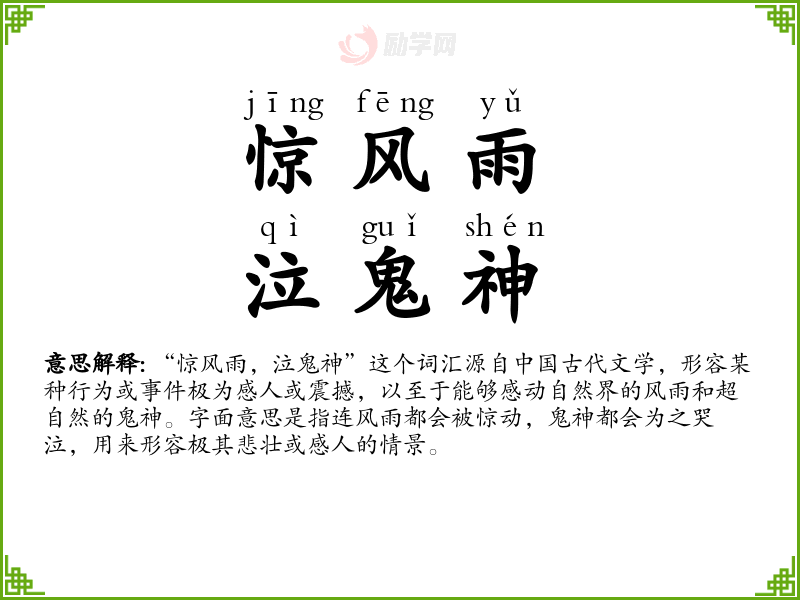 1.惊风雨,泣鬼神的拼音是什么?惊风雨,泣鬼神怎么读?