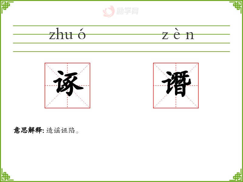 《楚辞》-众女嫉余之蛾眉兮,谣诼谓余以善淫。 王逸《九思·逢尤》-被诼谮兮虚获尤。