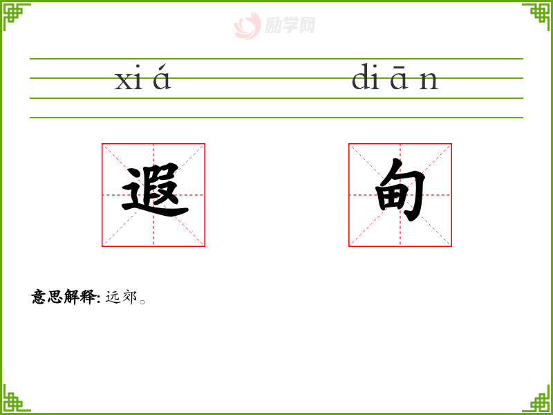 《说文》。段注:“甸,王田也。”-甸,天子五百里地。 《书·禹贡》。注:“为天子服治田也。”-五百里甸服。 《礼制·王制》-千里之内曰甸。 《周礼·夏官·职方式》。注:“甸,田也。治田入谷也。”-甸服。