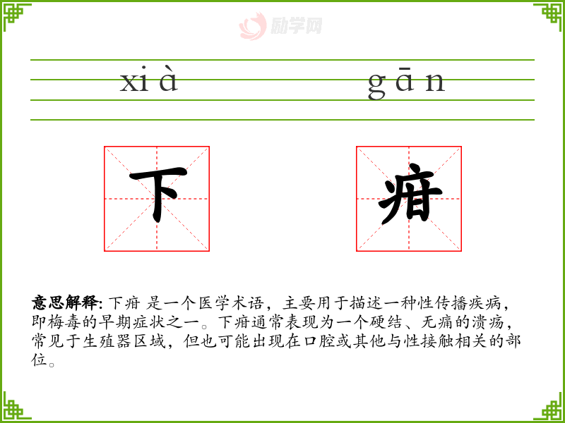 1.下疳的拼音是什么?下疳怎么读?