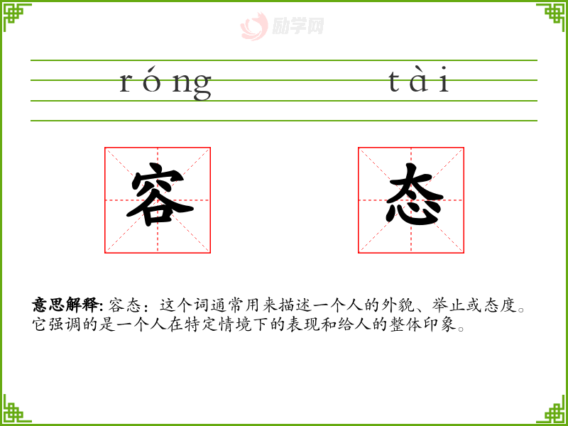 容态的拼音是:róng tài