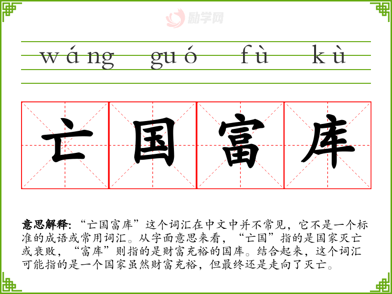 1.亡国富库的拼音是什么?亡国富库怎么读?