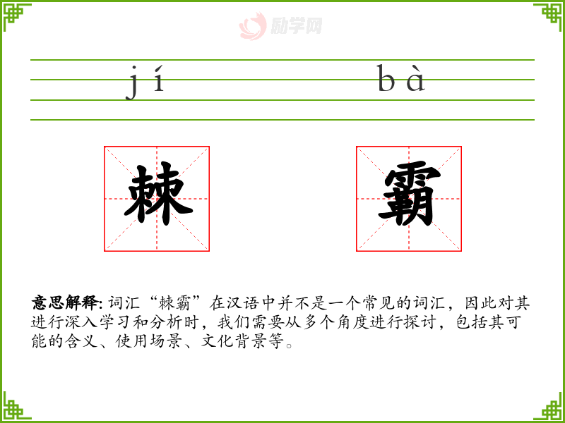 词汇“棘霸”在汉语中并不是一个常见的词汇,因此对其进行深入学习和分析时,我们需要从多个角度进行探讨,包括其可能的含义、使用场景、文化背景等。