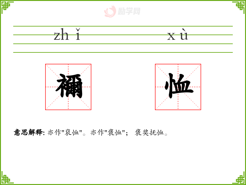 襧恤的意思是:亦作"裒恤"。亦作"褒恤"; 褒奖抚恤。