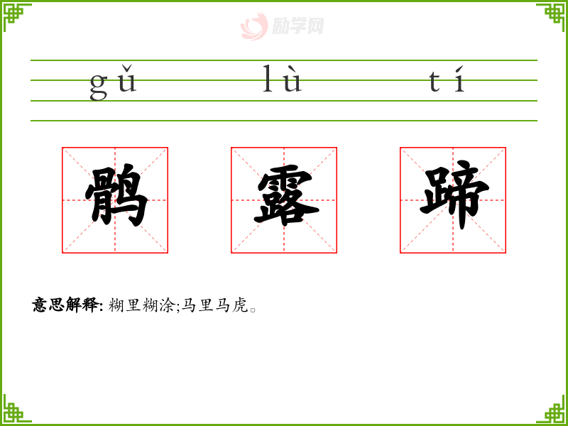 鹘露蹄的意思是:糊里糊涂;马里马虎。