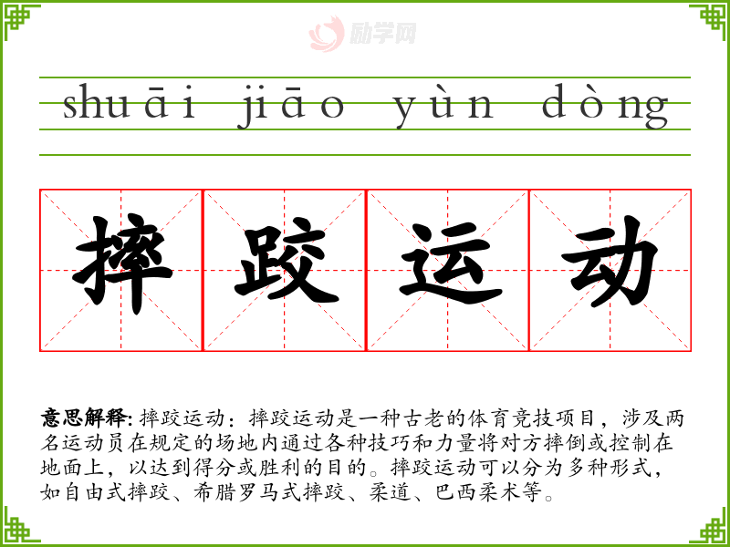 1.摔跤运动的拼音是什么?摔跤运动怎么读?