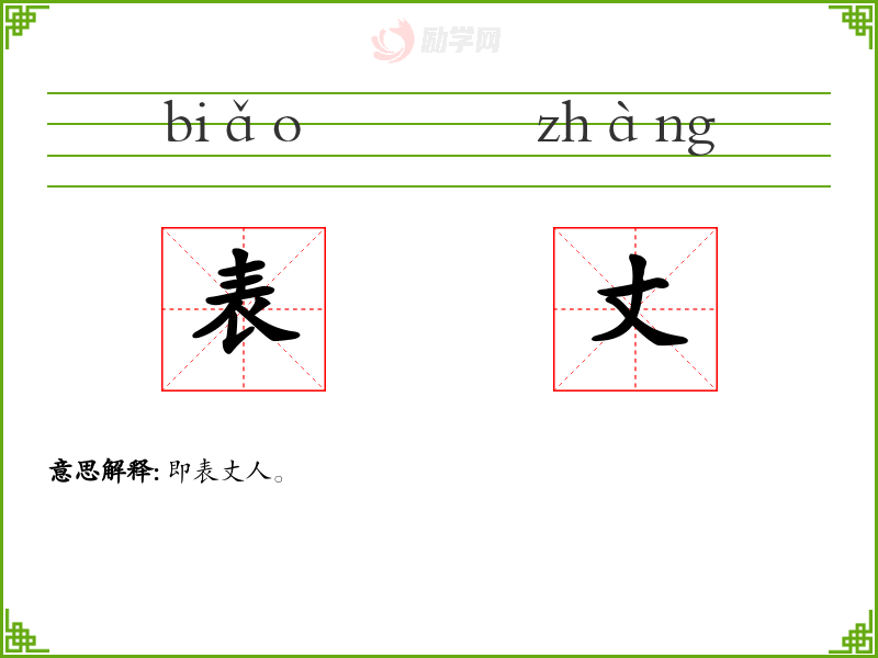 《说文》。朱骏声曰:“古者衣裘,以毛为里。按,古衣裘皆外毛,礼服必加裼衣其上。许所谓上衣也,故曰以毛为田,言有表,则毛在里也。”-表,上衣也。 《礼记·玉藻》-表裘不入公门。 《论语》。皇疏:“谓加上衣也。”-必表而出之。 《庄子·让王》-中绀而表素。