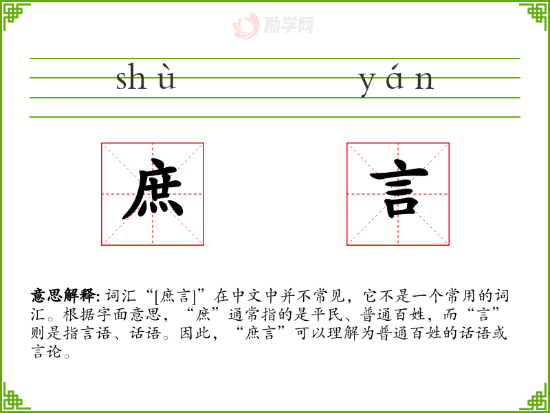 - 演变:在古代文献中,“庶言”可能指普通人的言论,但随着时间的推移,这个词汇的使用频率降低,现代汉语中较少使用。
