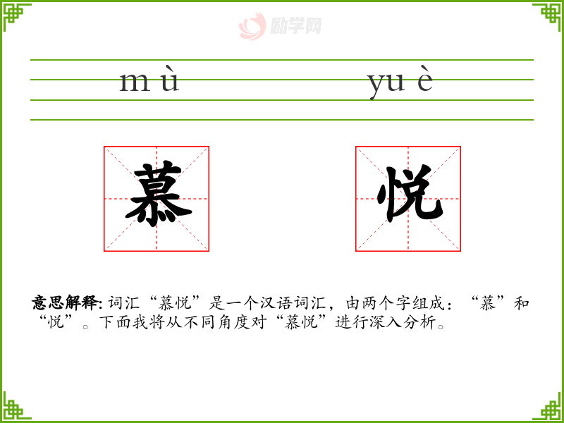 - 慕:源自古代汉语,意为向往、敬仰。