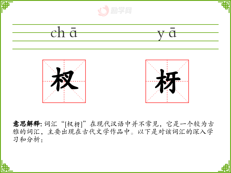 词汇“[杈枒]”在现代汉语中并不常见,它是一个较为古雅的词汇,主要出现在古代文学作品中。以下是对该词汇的深入学习和分析: