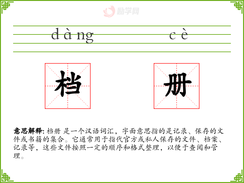 档册 是一个富有历史和文化内涵的词汇,它在不同的语境中有着丰富的应用。了解和掌握这个词汇,不仅有助于更好地理解中文,还能在语言表达中增添更多的深度和色彩。