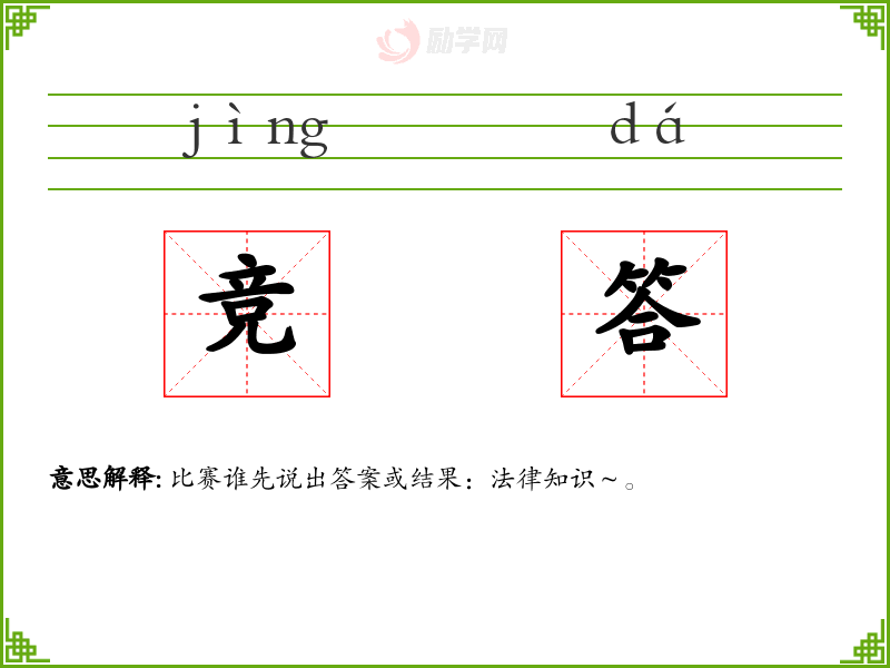 竞答的意思是:比赛谁先说出答案或结果:法律知识~。