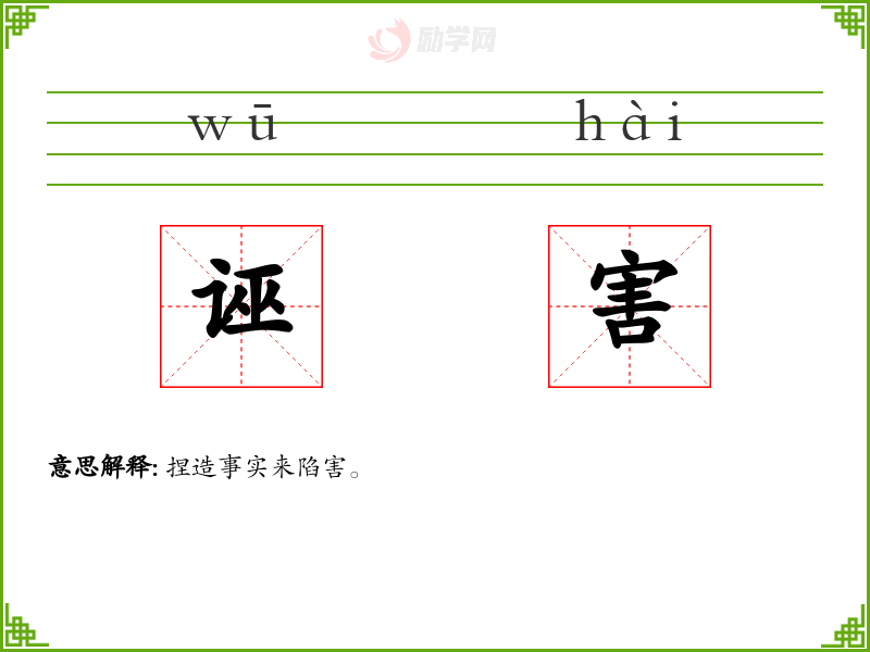 《书·大诰》-王害不违卜。 《诗·周南·葛覃》-薄汙我私,薄澣我衣,害澣害否,归宁父母。 《孟子·梁惠王上》-时日害丧,予及女偕亡。 《汉书·翟方进传》-予害敢不于祖宗安人图功所终?
