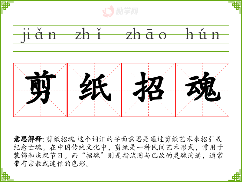 1.剪纸招魂的拼音是什么?剪纸招魂怎么读?