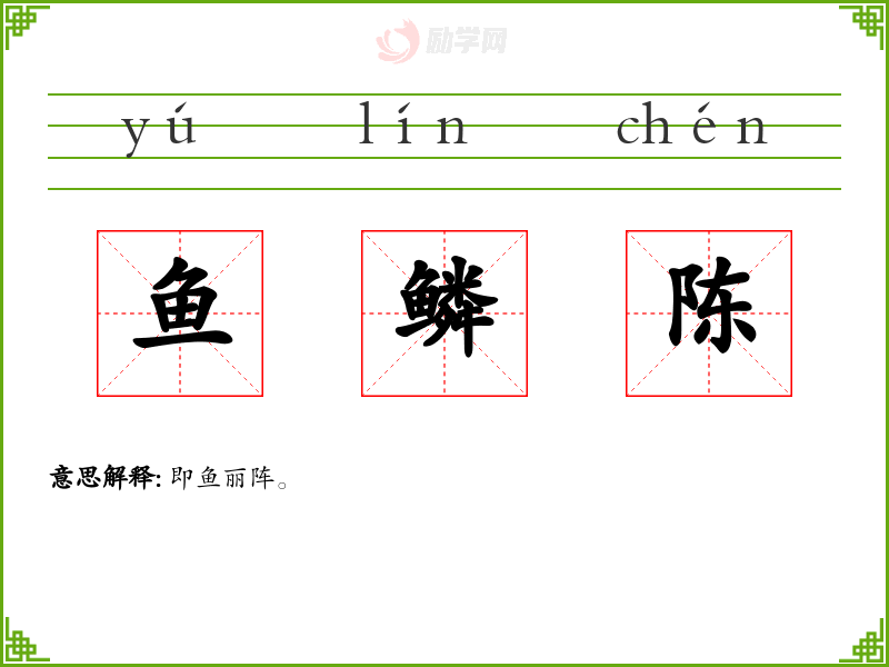 鱼鳞陈的意思是:即鱼丽阵。