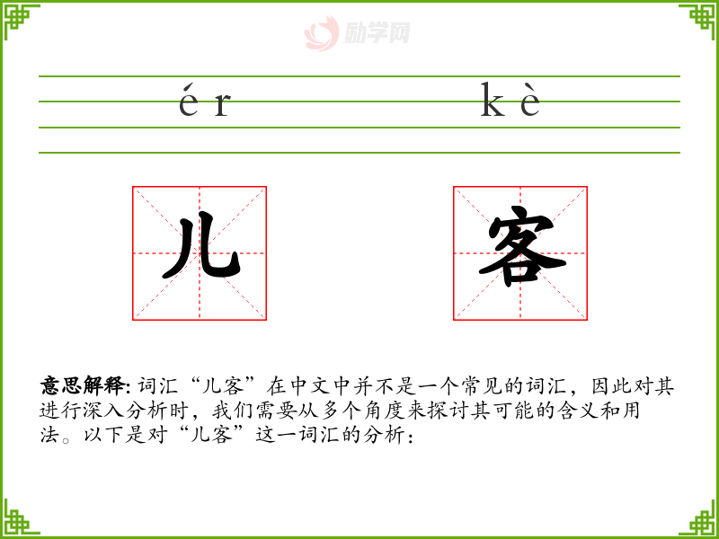 词汇“儿客”在中文中并不是一个常见的词汇,因此对其进行深入分析时,我们需要从多个角度来探讨其可能的含义和用法。以下是对“儿客”这一词汇的分析: