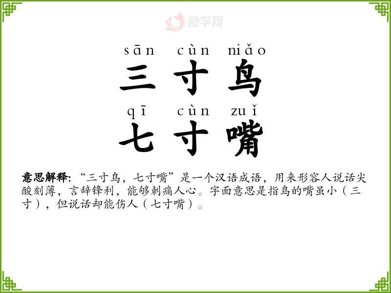 1.三寸鸟,七寸嘴的拼音是什么?三寸鸟,七寸嘴怎么读?