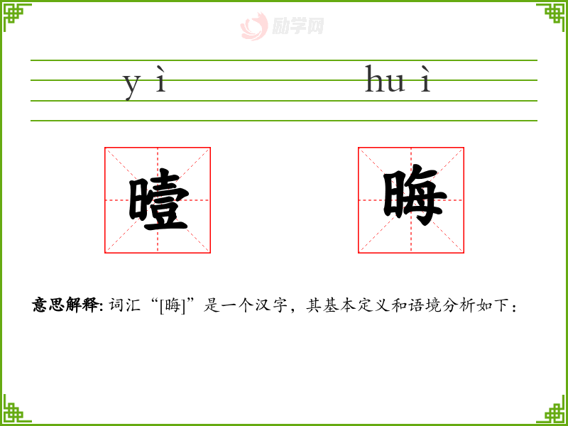 词汇“[晦]”是一个汉字,其基本定义和语境分析如下: