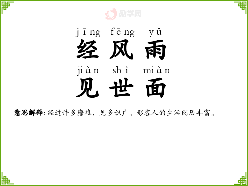 1.经风雨,见世面的拼音是什么?经风雨,见世面怎么读?