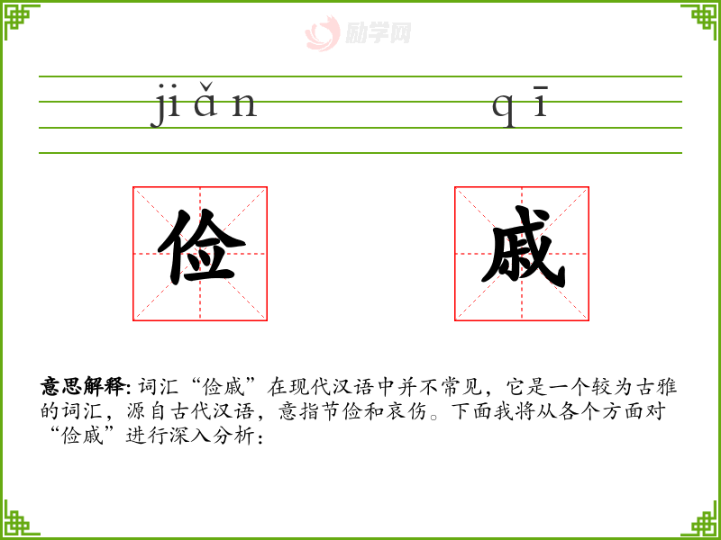 词汇“俭戚”在现代汉语中并不常见,它是一个较为古雅的词汇,源自古代汉语,意指节俭和哀伤。下面我将从各个方面对“俭戚”进行深入分析: