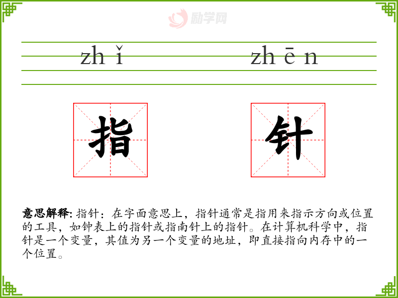 - 专业领域:在计算机科学中,指针是编程中的一个基本概念,用于管理内存和数据结构。