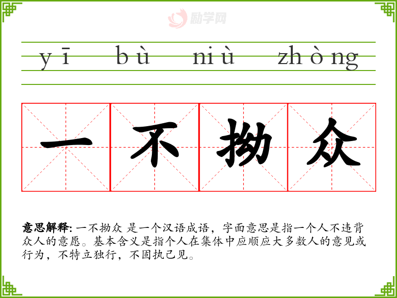 1.一不拗众的拼音是什么?一不拗众怎么读?