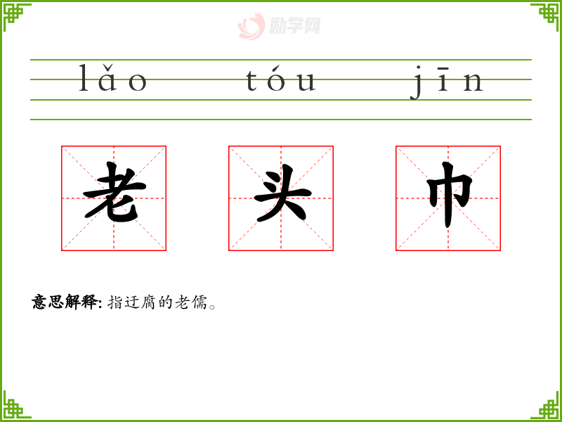 老头巾的意思是:指迂腐的老儒。