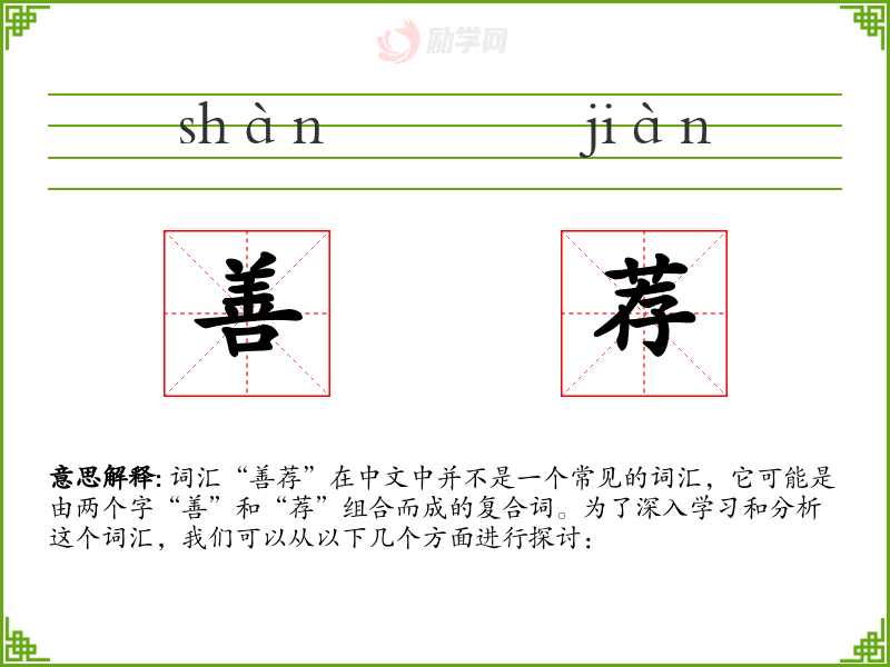 1.善荐的拼音是什么?善荐怎么读?