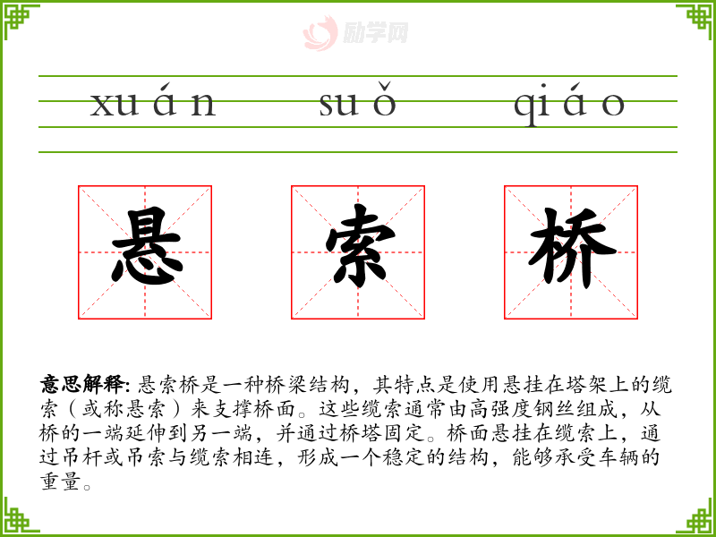1.悬索桥的拼音是什么?悬索桥怎么读?