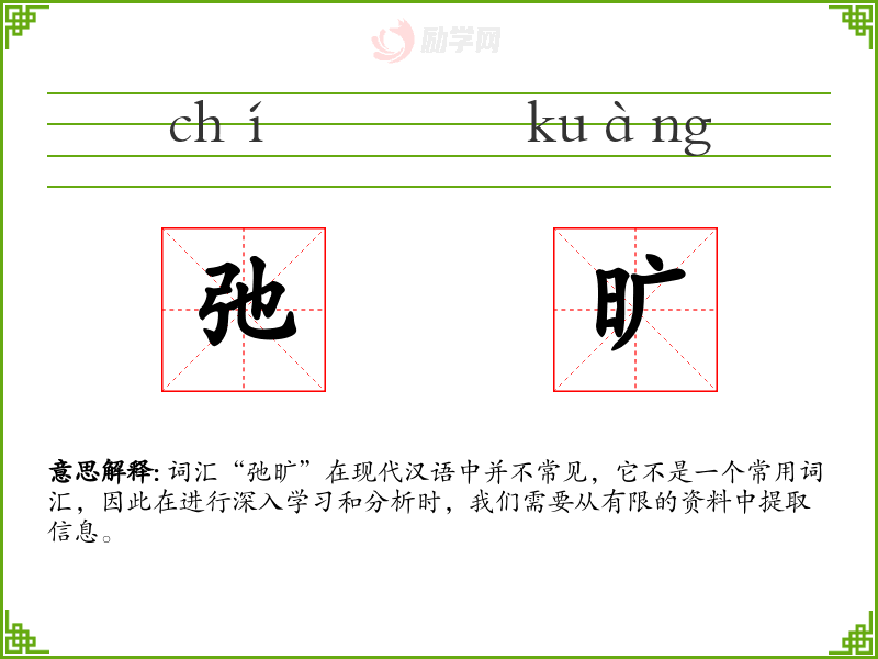 词汇“弛旷”在现代汉语中并不常见,它不是一个常用词汇,因此在进行深入学习和分析时,我们需要从有限的资料中提取信息。