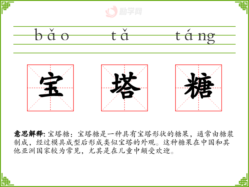 1.宝塔糖的拼音是什么?宝塔糖怎么读?
