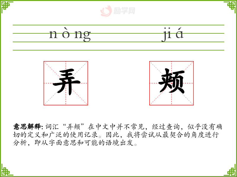 尽管“弄颊”不是一个常用词汇,通过对其可能的含义和语境的探讨,我们可以理解词汇在语言中的灵活性和多样性。在语言学习和表达中,了解和掌握词汇的不同用法和含义是非常重要的。