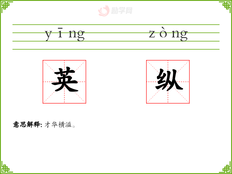 英纵的意思是:才华横溢。