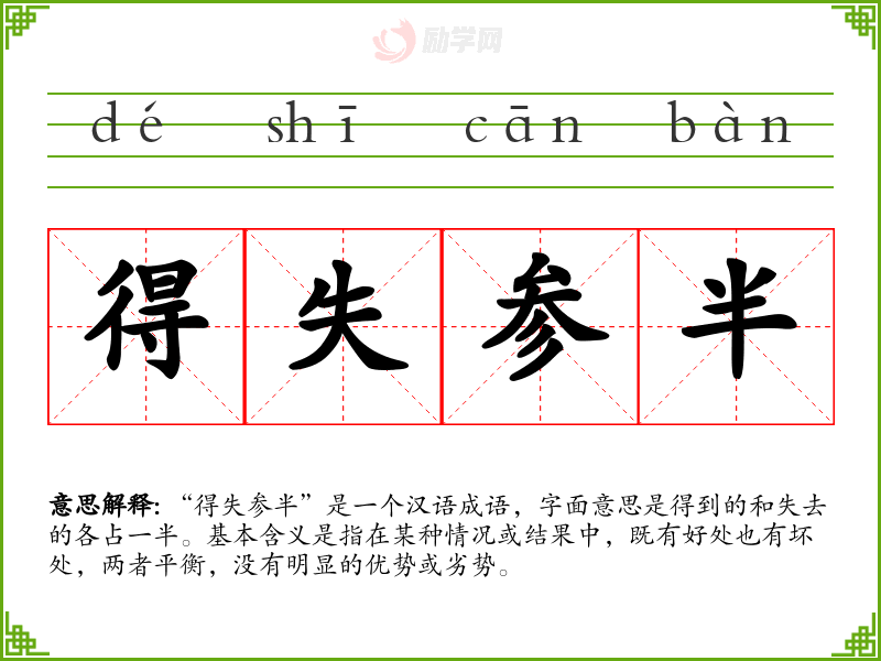 1.得失参半的拼音是什么?得失参半怎么读?
