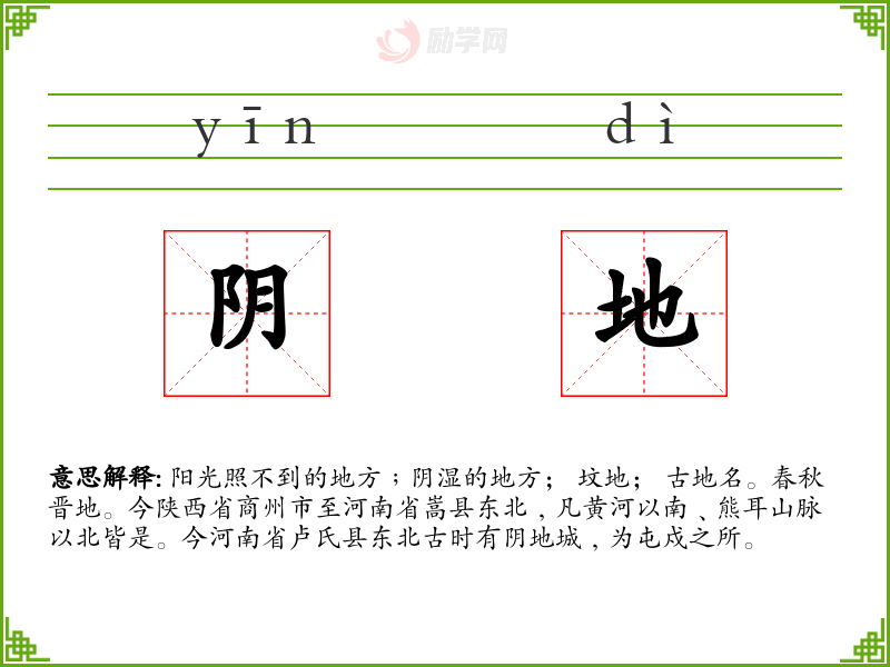 1.阴地的拼音是什么?阴地怎么读?