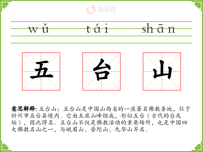 - 口语:在日常对话中,提到五台山可能意味着谈论**信仰、旅游经历或历史文化。
