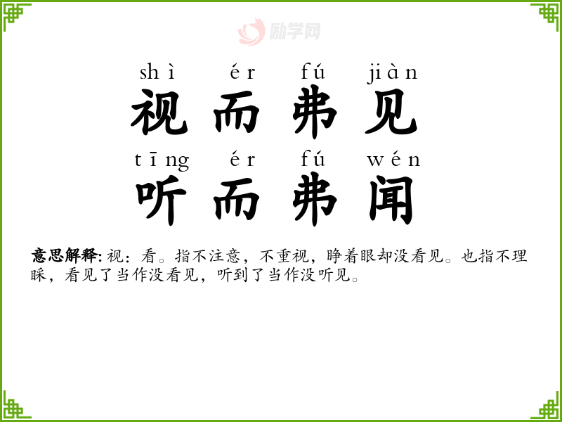 1.视而弗见,听而弗闻的拼音是什么?视而弗见,听而弗闻怎么读?