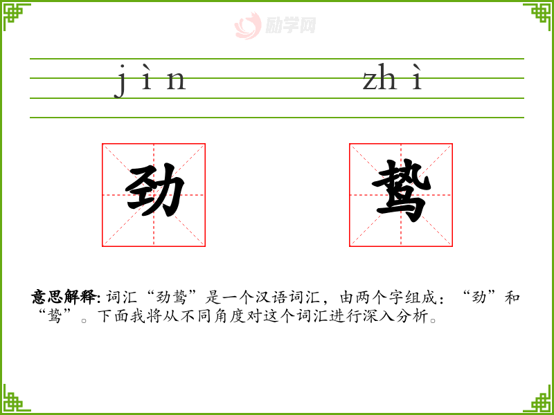 - “劲”和“鸷”都是古代汉语词汇,具有悠久的历史。